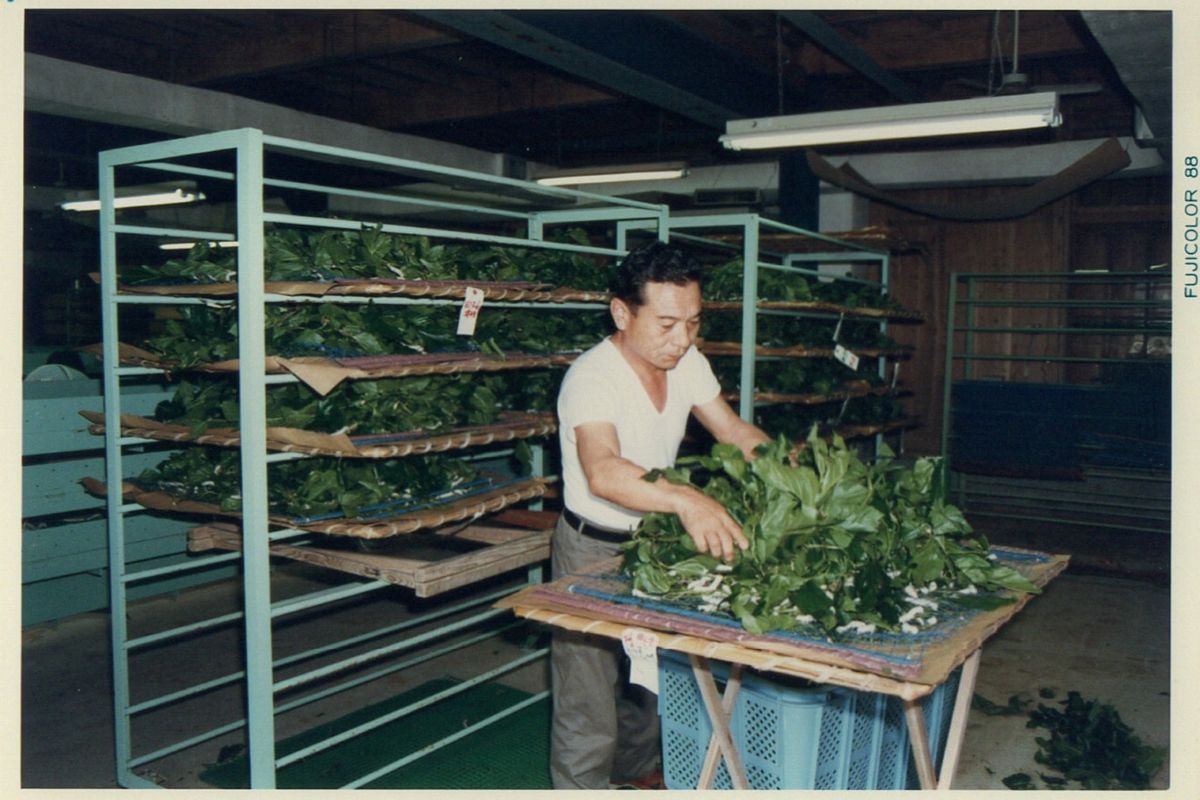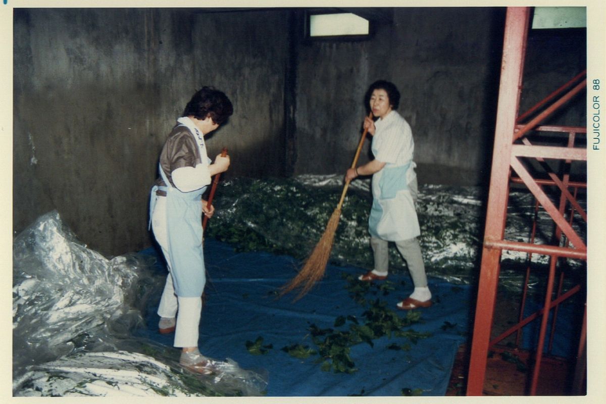 蚕は一生のうちに約100グラムの桑葉を食べます。1齢〜3齢の稚蚕期で3%、4齢で9%、5齢で88%と、そのほとんどが5齢の時期に桑を食べます。そのため、稚蚕期にはそれほど忙しくはありませんが、4齢以降は1日2回、朝、職員が登庁した直後と帰宅前に、給桑をしなければなりません。そのため、地下貯桑(ちょそう)室に大量の桑を貯めておく必要がありました。