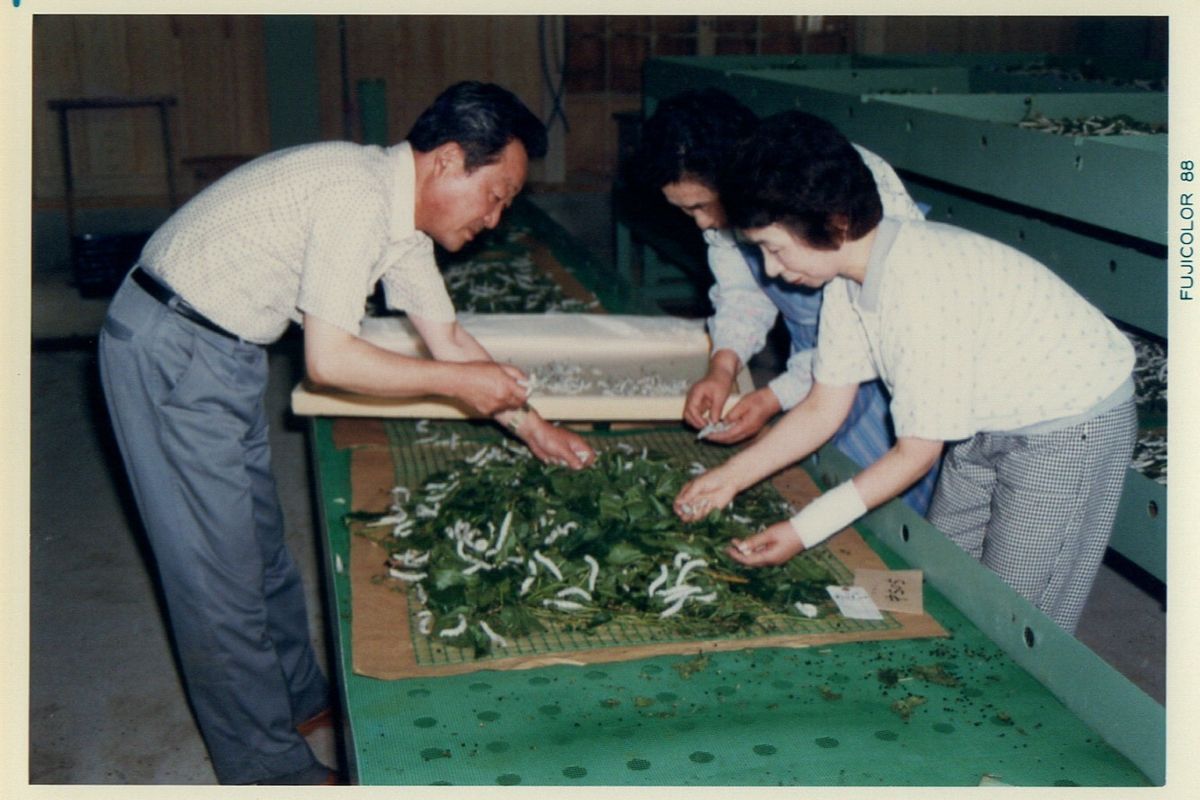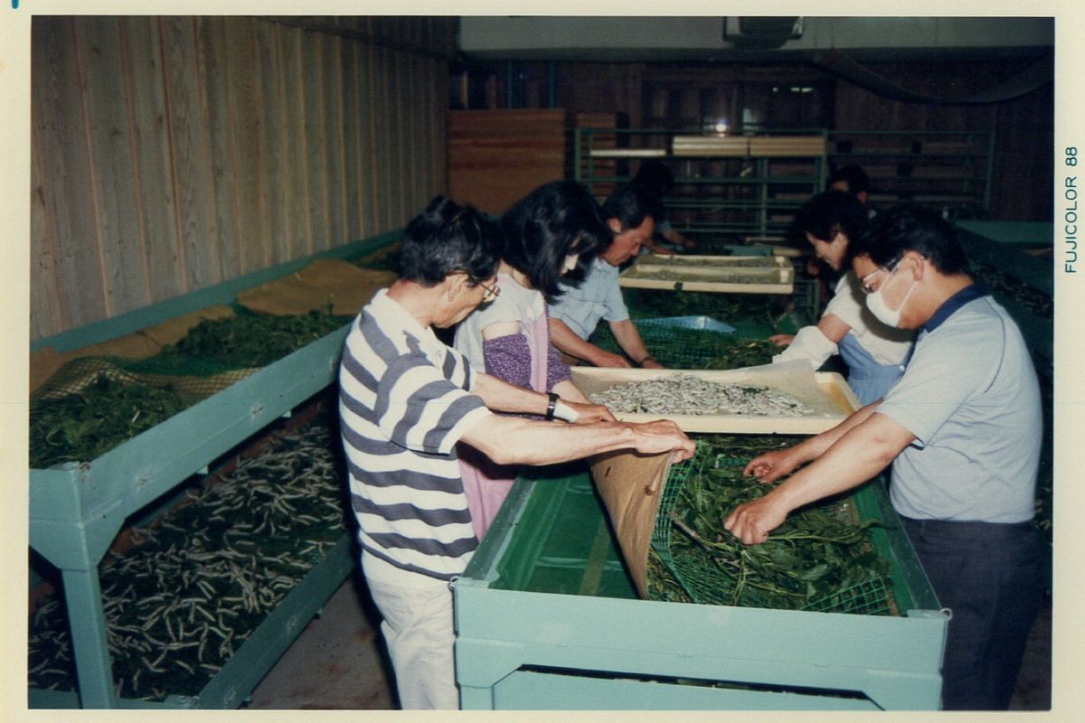 養蚕農家が桑を栽培し、糸繭生産をする交雑種を育て、繭を生産する一連の営みを養蚕業といいます。第一蚕室、第四蚕室は蚕品種特性研究室が使用し、原蚕を飼育し、原蚕の種の製造を行なっていました。