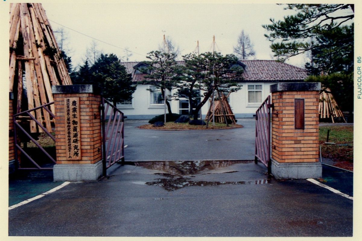 蚕糸試験場の職員は出勤時にこの表門を通り、各々の担当業務を行う棟に向かったとされています。看板は違うものの、現在も当時のまま門と塀が残っております。