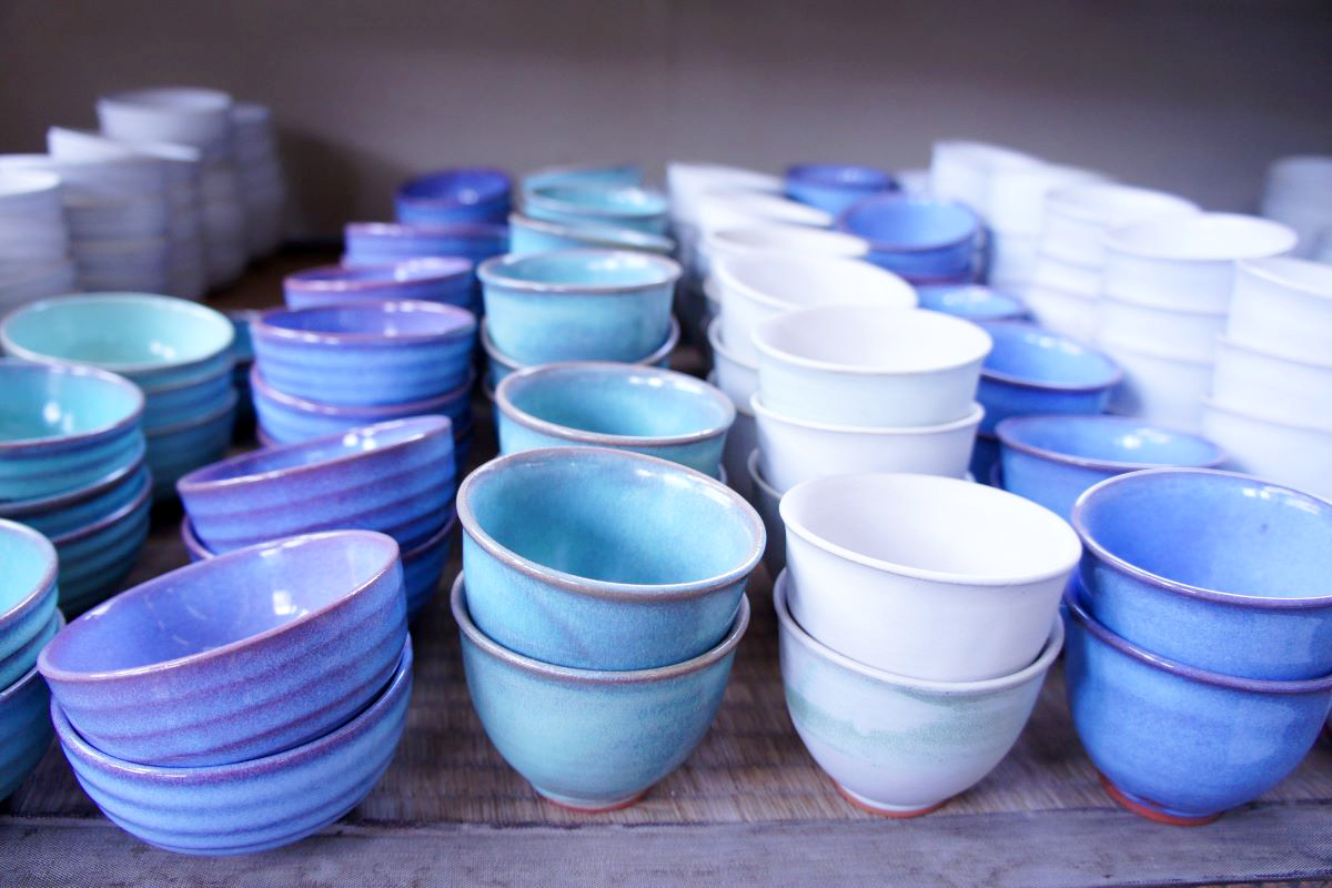 新庄藩の御用窯として天保12年(1841年)に開窯。藩お抱えの瓦職人であった初代弥兵衛が余暇を使って始めた器づくりが評判となり、以後7代にわたり伝統の窯として受け継がれています。「出羽の雪のかげり」と呼ばれる味わいのある鮮やかな青い色が特徴。豊富な陶土と家伝の釉薬(うわぐすり)を使い、全国的に少なくなっている「登窯」で焼かれた陶器の素朴な美しさが魅力です。