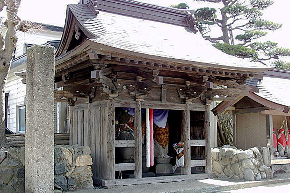 新庄市金沢に位置するお寺。その山門脇に大きな地蔵様、「まかどの地蔵」が安置されています。この地蔵は、春秋の彼岸のときにはお参りに来た人たちがぼた餅や団子を食べさせるので口元であんこで黒く汚れています。その理由は、新庄まつりの起源となった宝暦の大飢饉に由来があり飢饉での餓死者が多く、寺での供養も追いつかないため城下の町はずれに大きな穴を掘り次々投込んでいたそう。するとその年にウンカが大発生し稲に虫害をもたらします。人々はそれを餓死者の恨みだと思い供養のために地蔵を置き、餓死して餓鬼道に陥った人々の魂を鎮めるための祈りから地蔵の口にぼた餅をつけるという風習ができたと言われています。
