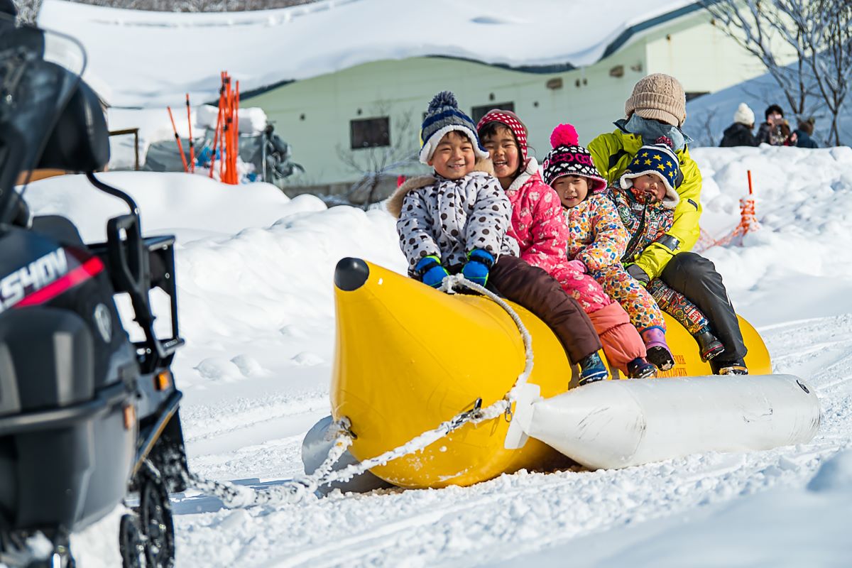 新庄市エコロジーガーデン北側エリアにて開催される雪国ワンダーランドは、雪を使ったアトラクション体験ができるテーマパークです。一面の銀世界で雪上バナナボートやスノーモービル乗車体験といった雪遊びを満喫できます。
